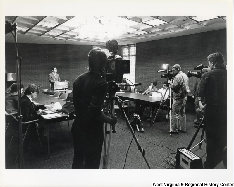 - Photograph of Congressman Rahall being recorded during a visit to Marshall University