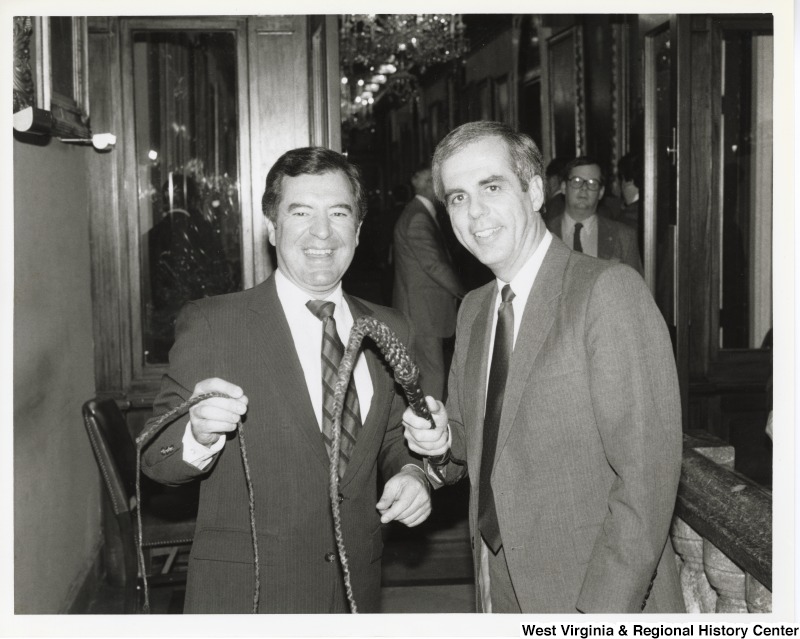 - Congressmen Nick Rahall and Congressman Tony Coelho, Majority Whip, holding whips.