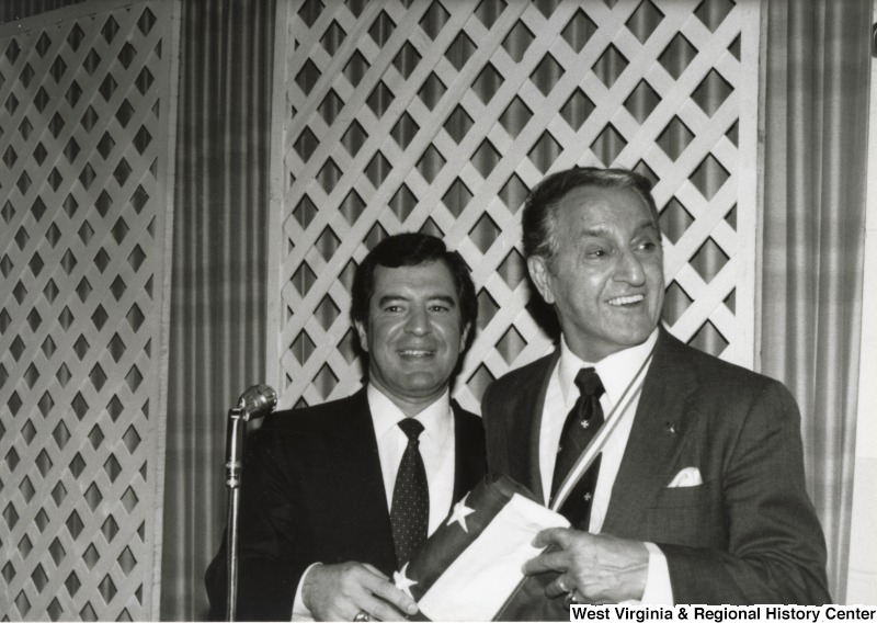 - Representative Nick J. Rahall holds an American flag with Danny Thomas at the American Lebanese Syrian Associated Charities (ALSAC) dinner.