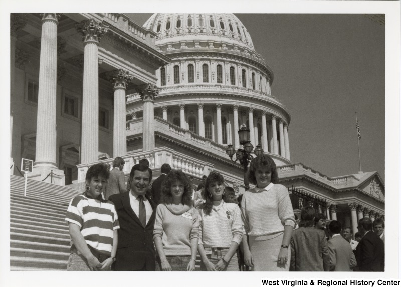 Photograph of Congressman Rahall with four unidentified women in front of the U.S. Capitol
