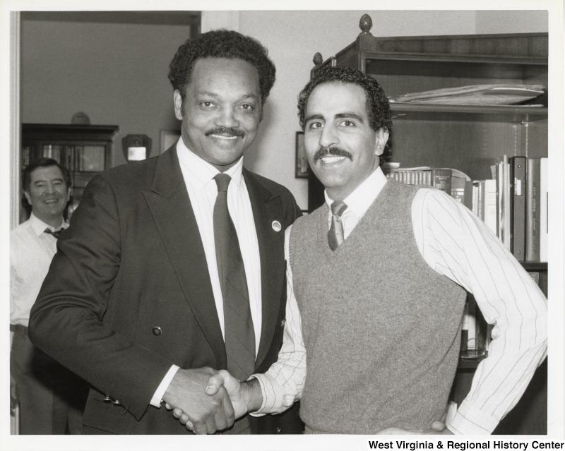 - Jesse Jackson, then candidate for the Democratic presidential nomination, with an unidentified American Legion member. Congressman Nick Rahall is in the background.