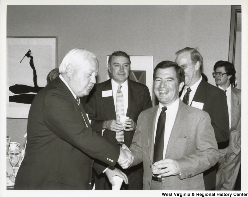 Photograph of Congressman Rahall shaking hands with an unidentified man