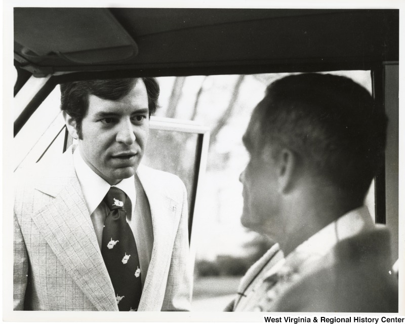 - Congressman Nick Rahall II speaking to Arnold Porter, the Raleigh County Chairman, who is sitting in a car.