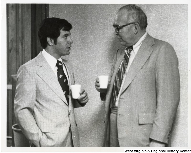 - Congressman Nick Rahall II speaking with Bernard Crawford a West Virginia State Senator from Beckley.