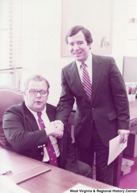 - Congressman Nick Rahall II shaking the hand of House of Delegate Sergeant of Arms, Oce Smith.