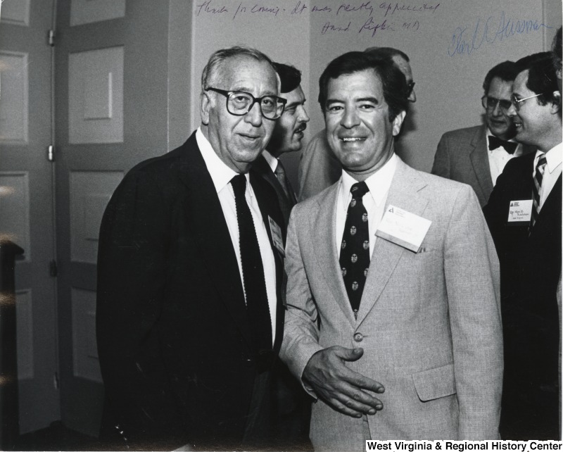 - Representative Nick J. Rahall (D-W.Va.) with an unidentified man associated with the American Diabetes Association. Representative Alan Mollohan (D-W.Va.) stands off to the side talking with three other unidentified men.