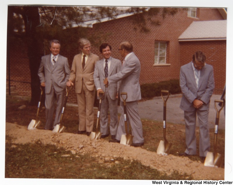 - From left to right is Senator Robert C. Byrd, Miles Dean from Governor John D. Rockefeller's office, Congressman Nick Rahall, II, O. V. Lilly, and Mason Lilly at groundbreaking for the Crab Orchard-MacArthur Public Service District building.