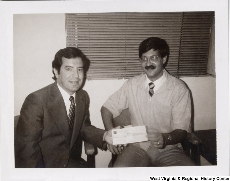 - Congressman Nick Rahall, II and an unidentified man. Both are holding the ends of a check.