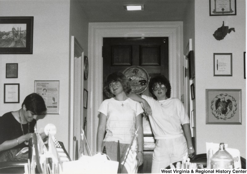 - Two unidentified women stand in the doorway of an office.