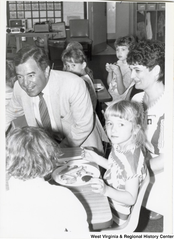 - Photograph of Congressman Rahall eating with several children