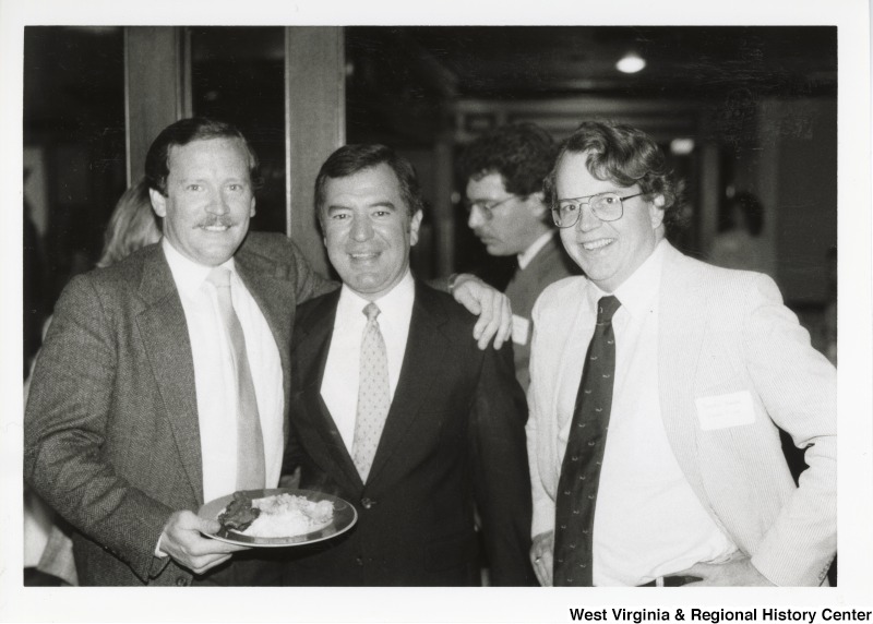 - Congressman Nick Rahall with two unidentified men at a breakfast.