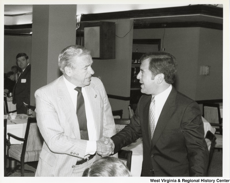 - Photograph of Congressman Rahall shaking hands with Chairman Howard at a breakfast