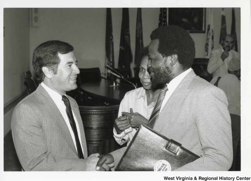 - Photograph of Congressman Rahall with James Motlasi, South African UMWA Leader