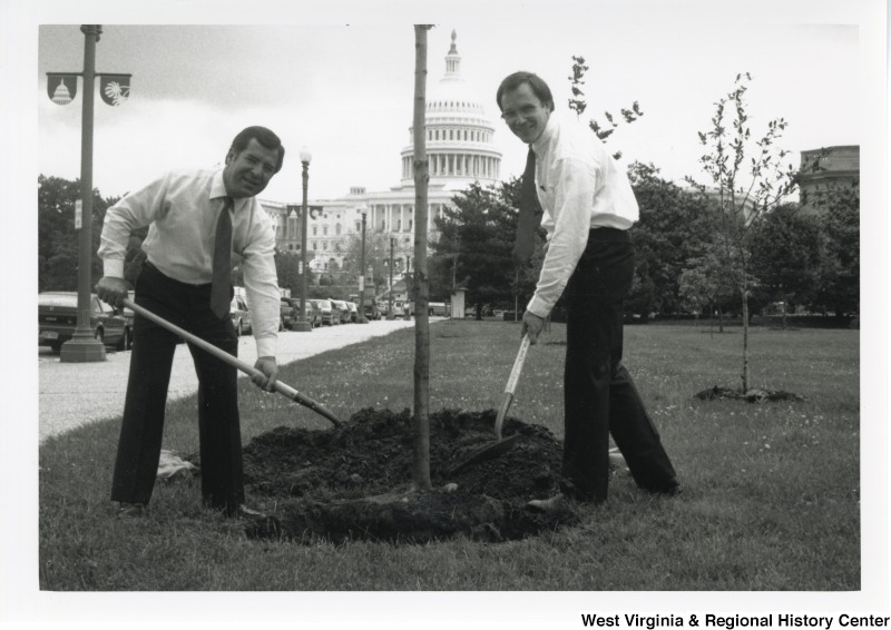 - Congressman Nick Rahall and Congressman Harley O. Staggers planting a tree in front of the United States Capitol Building on West Virginia Day.
