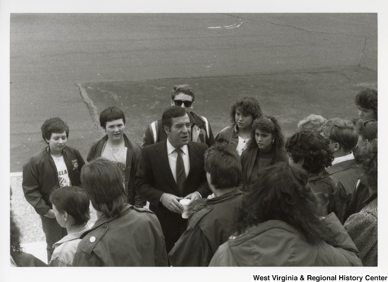 - Congressman Nick Rahall speaking with a group of Oceana High School (Wyoming County, West Virginia) band students at the United States Capitol.