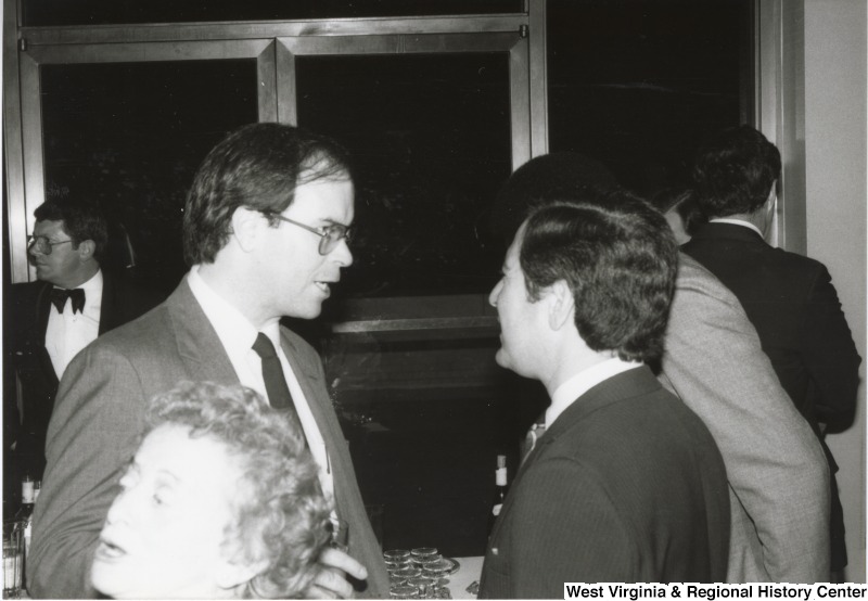 - On the left, Representative Harley O. Staggers, Jr. (D-W.Va.) stands talking with Representative Nick J. Rahall (D-W.Va.).