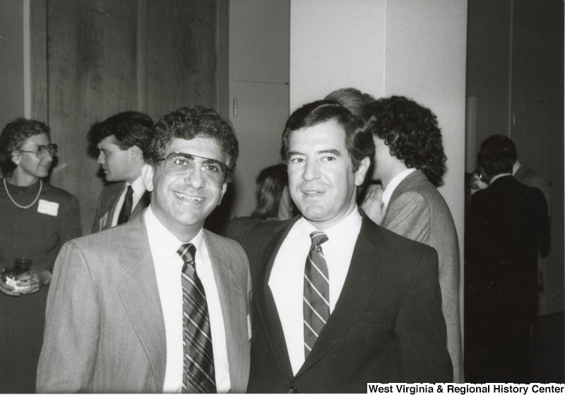 - On the right, Representative Nick J. Rahall (D-W.Va.) with an unidentified man at an event.