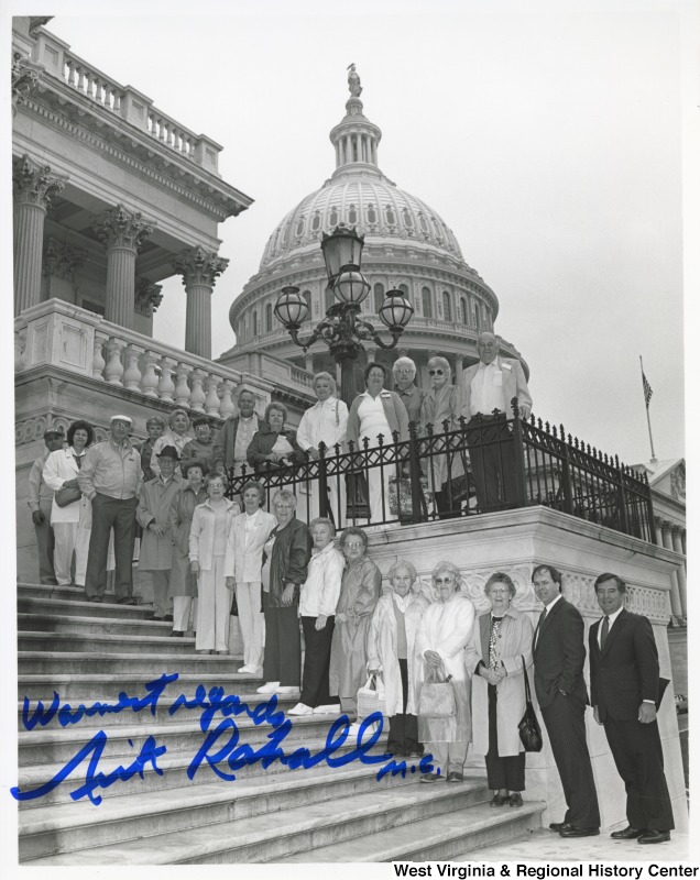 - Congressman Nick Rahall with unidentified Fayette County Senior citizens in front of the United States Capitol building. Photograph is signed "Warm Regards, Nick Rahall. M.C."