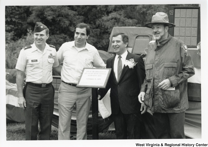 - Congressman Nick Rahall with three unidentified men at the Gauley River Recreational Area Dedication.
