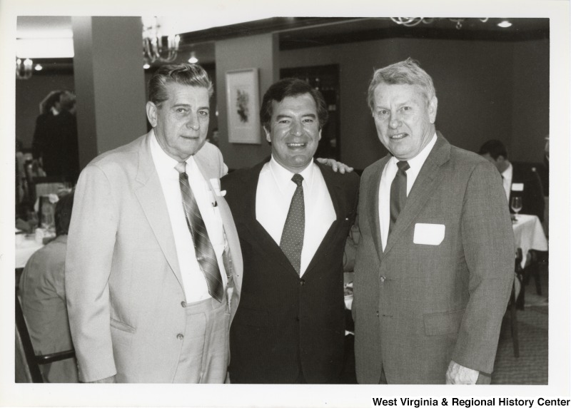 - Representative Nick J. Rahall (D-W.Va.) smiles for a photograph standing between two unidentified men.