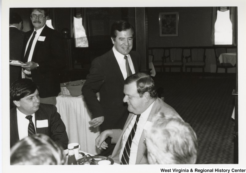 - Representative Nick J. Rahall (D-W.Va.) stands near a group of unidentified men at an event.