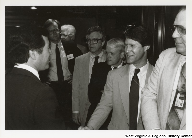 - Photograph of Congressman Rahall shaking hands with a line of unidentified men
