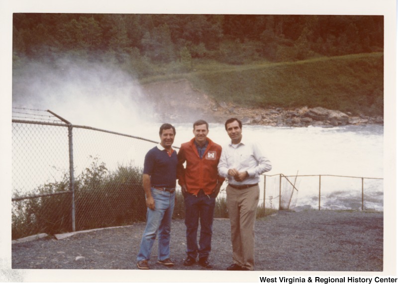 - On the left, Representative Nick J. Rahall (D-W.Va.) with two unidentified men in front of a river.