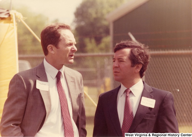 Photograph of Congressman Rahall talking with an unidentified man