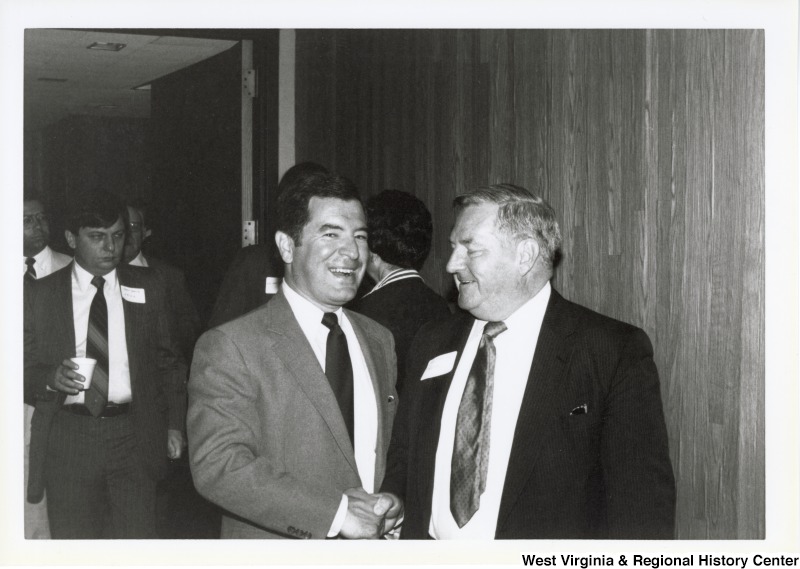 Photograph of Congressman Rahall shaking hands with an unidentified man