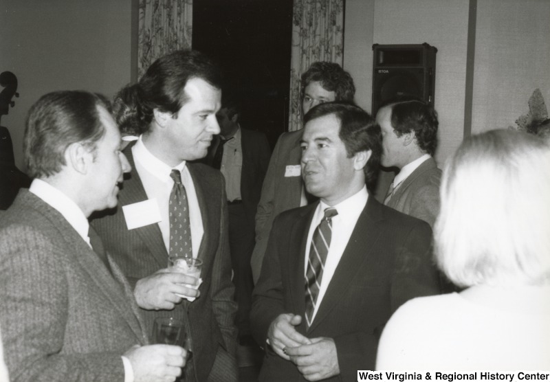 - Congressman Nick Rahall II (second from right) speaking with two unidentified men and one unidentified woman at one of his birthday parties.