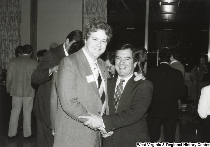 - Congressman Nick Rahall II shaking the hand of an unidentified man at one of his birthday parties.