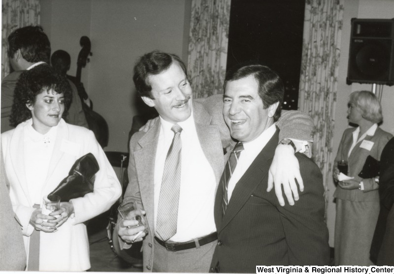 - An unidentified man with his arm around Congressman Nick Rahall II (right) at one of Rahall's birthday parties. An unidentified woman is standing beside the unidentified man.