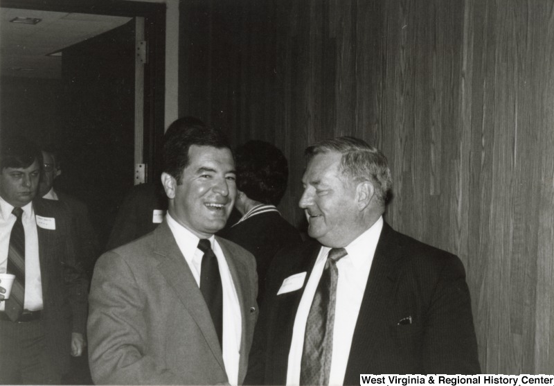 - Congressman Nick Rahall II (left) with an unidentified man at his birthday party. Four unidentified people are in the background.