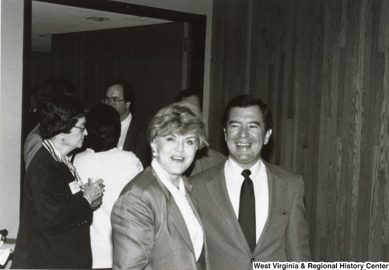 - Congressman Nick Rahall II with an unidentified woman at his birthday party. Behind them are five unidentified people standing in a doorway.