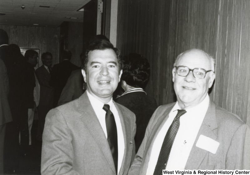 - Congressman Nick Rahall II (left) with an unidentified man at his birthday party.