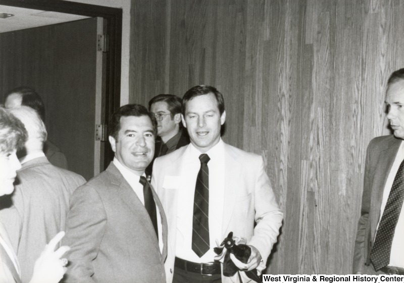 - Congressman Nick Rahall II (left) standing with an unidentified man at his birthday party.