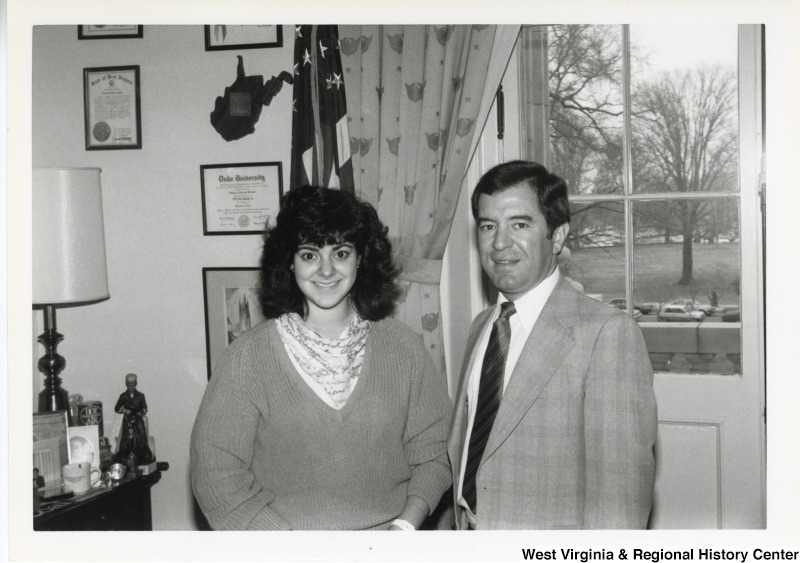 - On the right, Representative Nick J. Rahall (D-W.Va.) with an unidentified woman in an office.