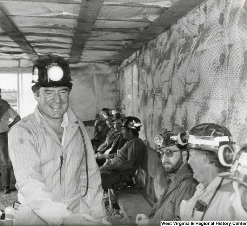 - Representative Nick J. Rahall (D-W.Va.) is seen wearing a mining uniform and headlamp surrounded by unidentified coal miners.