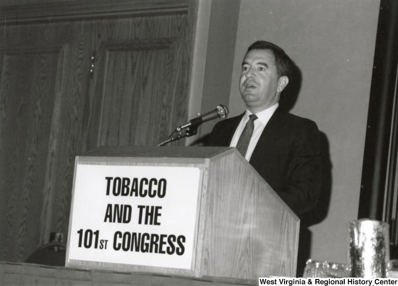 Photograph of Congressman Rahall speaking about tobacco and the 101st congress