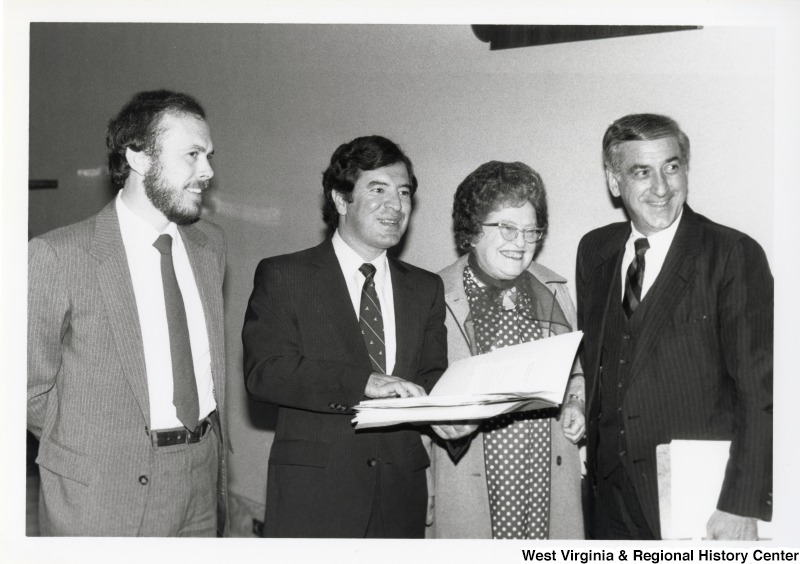 - Congressman Nick Rahall II (second from the left) with two unidentified men and one woman. Congressman Rahall is holding a book open.