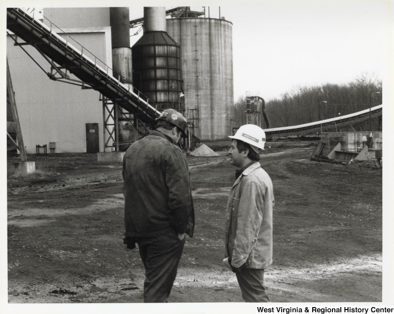 - Photograph of Congressman Rahall speaking with an unidentified man at a mine site