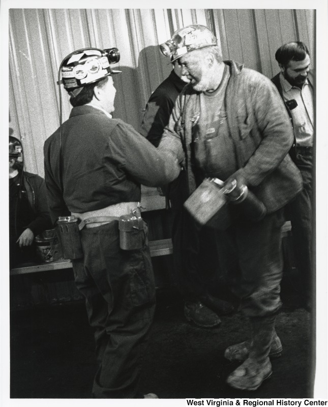 - Congressman Nick Rahall (D-WV) shaking hands with an unidentified coal miner.