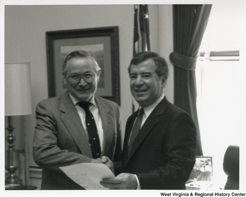 - Congressman Rahall (D-WV) with Dallas Peck, U.S. Geological Survey president, at his U.S. Capitol office.