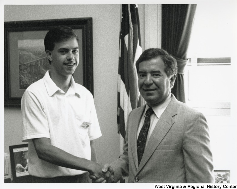 - Photograph of Congressman Rahall shaking hands with an unidentified man from the National Young Leader conference