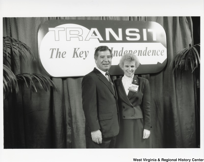 - Photograph of Congressman Rahall with Vickie Shaffer at a Transit Now reception