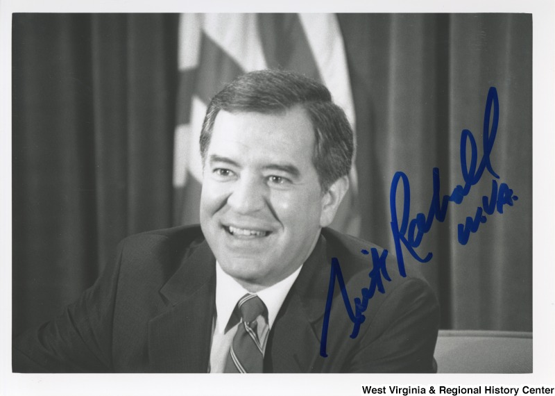 - Representative Nick J. Rahall (D-W.Va.) smiles for a photograph. The photograph is signed "Nick Rahall W.VA."
