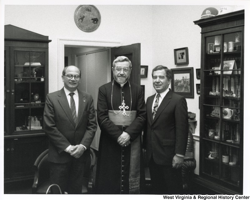 - From left to right: unidentified man, unidentified man in religious attire, Congressman Nick Rahall (D-WV).