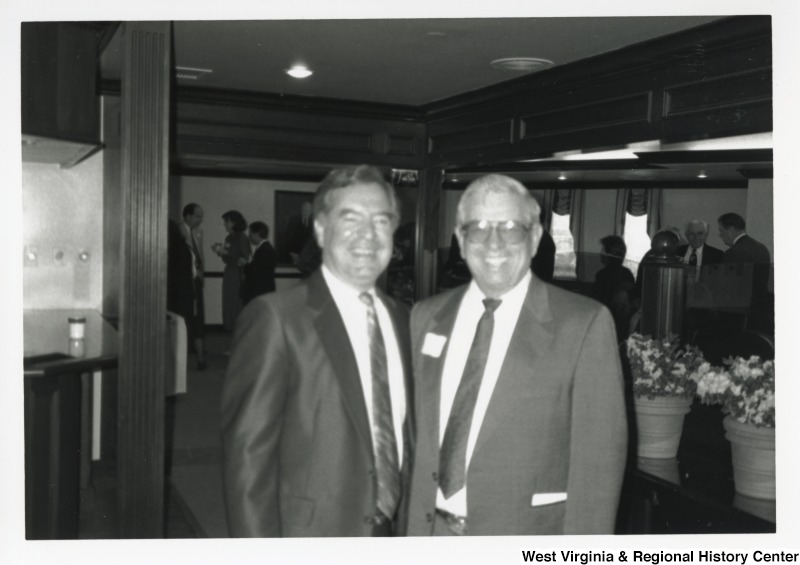 - On the left, Representative Nick J. Rahall (D-W.Va.) smiles for a photograph with an unidentified man.
