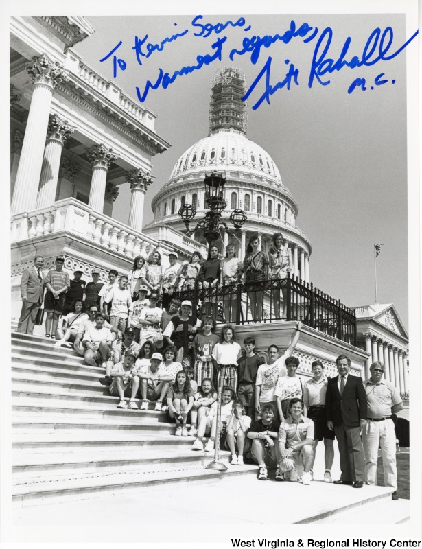 - Congressman Nick Rahall (D-WV) with Webster Springs students in front of the U.S. Capitol building. The photo is signed: "To Kevin Sears, Warmest regards, Nick Rahall M.C.