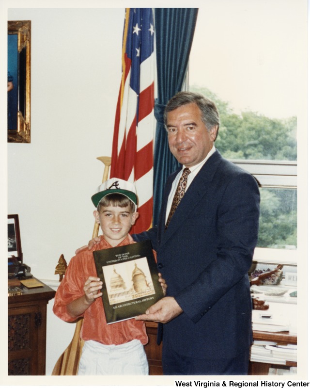 Photograph of Congressman Rahall in his office with Ryan Crook of the Save Lebanon Group